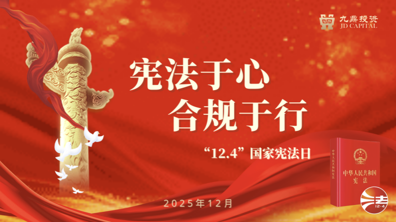 2025年12月1日,以“学习宣传贯彻习近平法治思想,推动宪法深入人心”为主题的第十二个国家宪法日暨“宪法宣传周”活动启动。九鼎投资积极响应,将宪法精神深度融入公司治理与业务实践,以金融工作的政治性与人民性为初心,为金融行业高质量发展注入法治力量。
